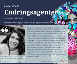 På oppdrag fra Bufdir startet RVTS, høsten 2021, den første nasjonale opplæringen om forebygging av negativ sosial kontroll og æresrelatert vold for ressurspersoner, frivillige organisasjoner og berørte miljøer i Norge. Til høsten starter vi opp andre runde som finner sted i Bergen, Oslo og Kristiansand. Mer informasjon om opplæringsprogrammet og påmelding finner du på www.endringsagenter.no