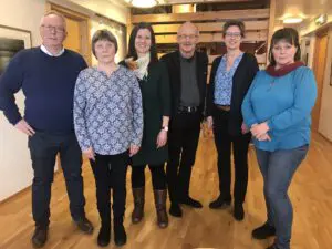 Spesialkonsulent ved RVTS Nord, Ola Robertsen (bildet, ytterst til venstre), forteller at de på møtet snakket om aktiviteter gjennom det siste året i de ulike Leve-fylkeslagene.
